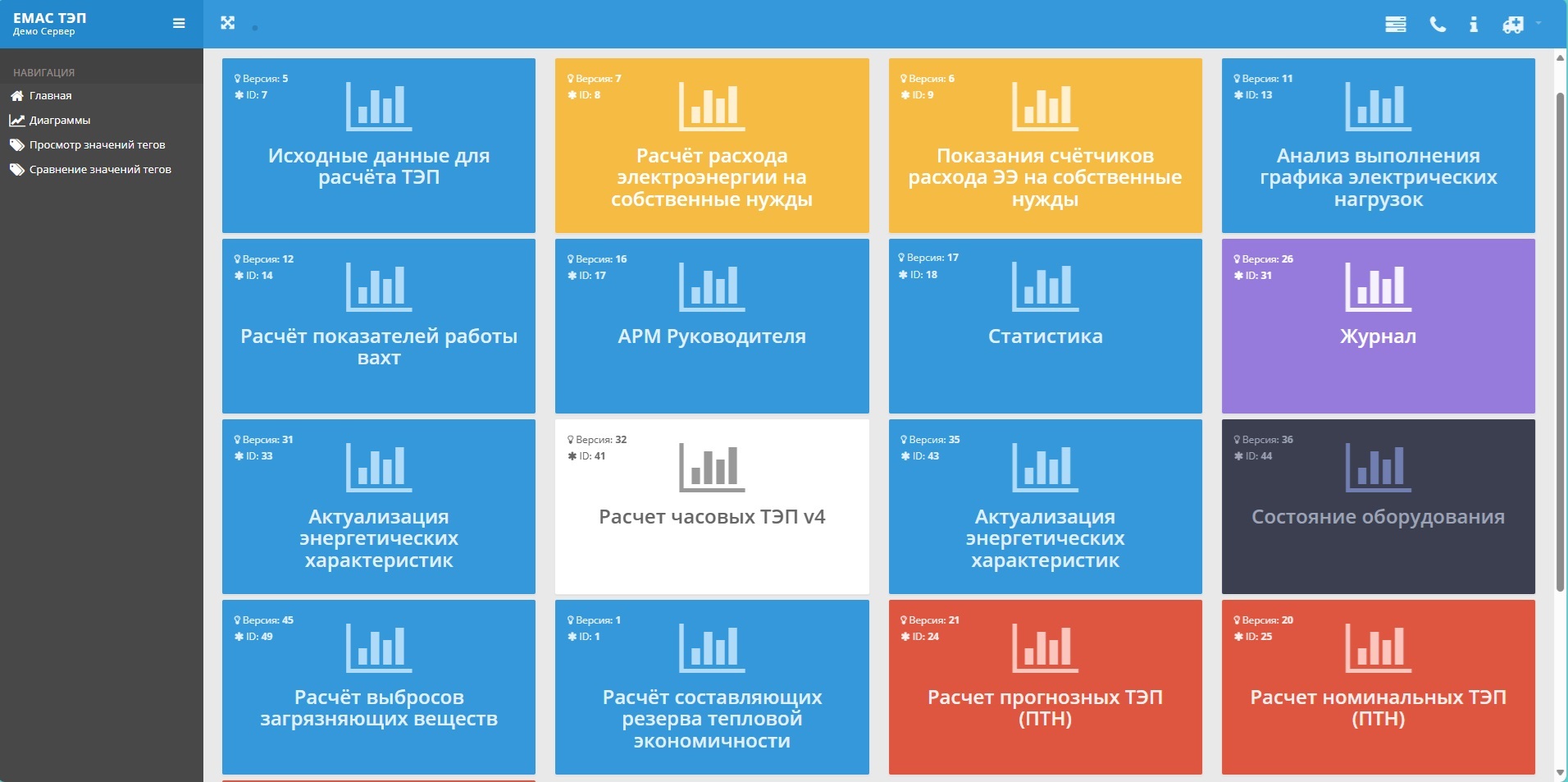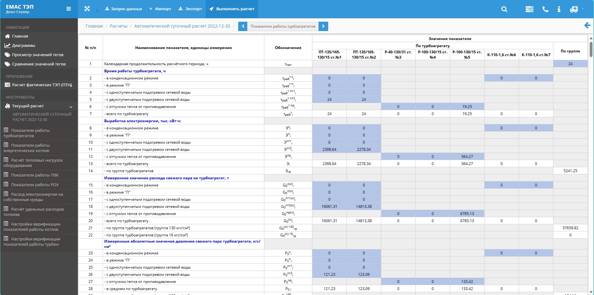 The analysis and calculation system for technical-economic indicators - "EMAS.TEP" module determines actual loads and equipment operating parameters