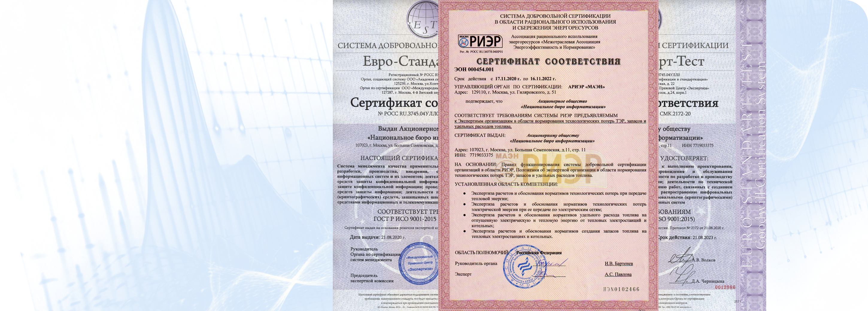 Все продукты и услуги АО «НБИ» зарегистрированы и сертифицированы. На сайте размещена лишь небольшая часть имеющихся свидетельств и лицензий. Необходимые документы направляются по запросу клиентов