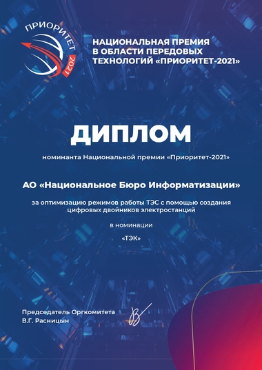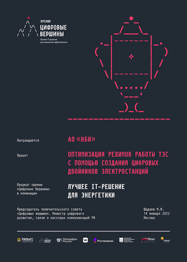 АО «Национальное бюро информатизации» за оптимизацию режимов работы ТЭС с помощью создания цифровых двойников электростанций в номинации «ТЭК»