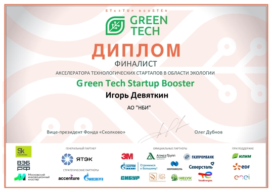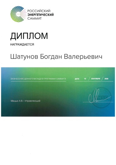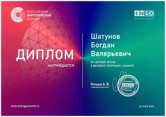 Награждается Шатунов Богдан Валерьевич за ценный вклад в деловую программу Саммита