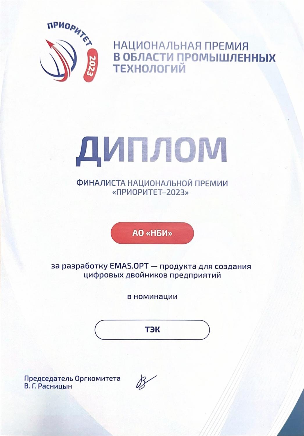За разработку EMAS.OPT - продукта для создания цифровых двойников предприятий в номинации "ТЭК"